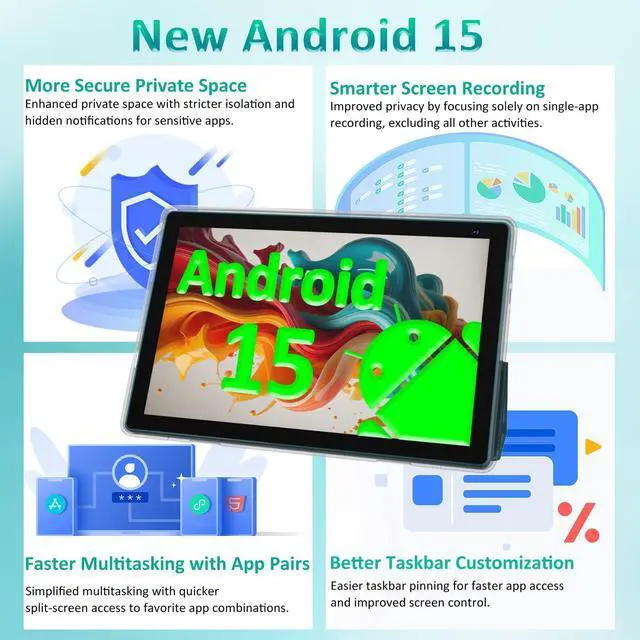 Android 15 Tablet The CP10 Pro ipad tablet is powered by the latest Android 15 OS with AI, ensuring broader app compatibility, faster startup tims, and improved responsiveness. The new system provides a more personalized and safer experience,upgraded privacy protection and security.