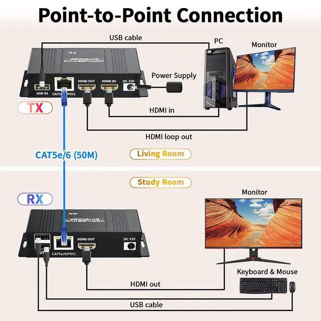 6) This HDMI KVM extender supports the POC function and only one 12v power supply is included.