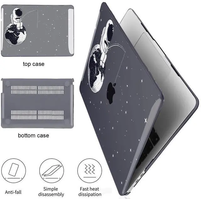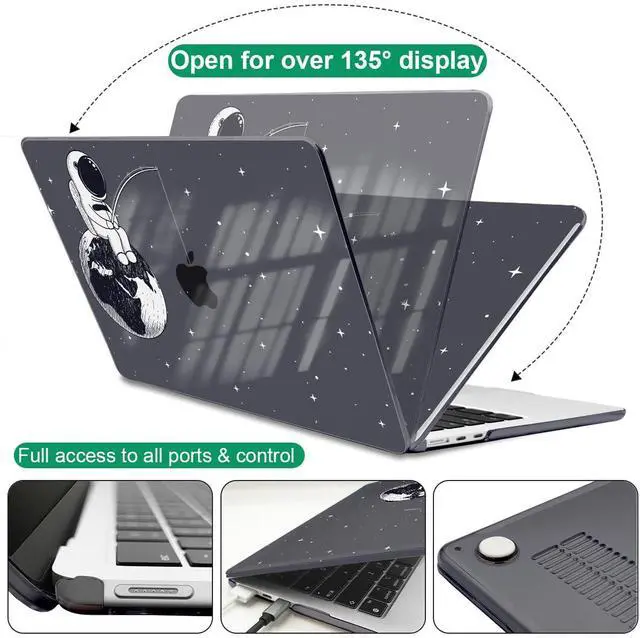 LCMOCICO for MacBook Air 13.6 inch Case 2025 2024 2023 2022 Release Model A3240 M4 A3113 M3 A2681 M2, Crystal Black Printed Pattern Plastic Hard Shell for 2025 Mac Air 13.6 M4 Cover, Astronaut Earth