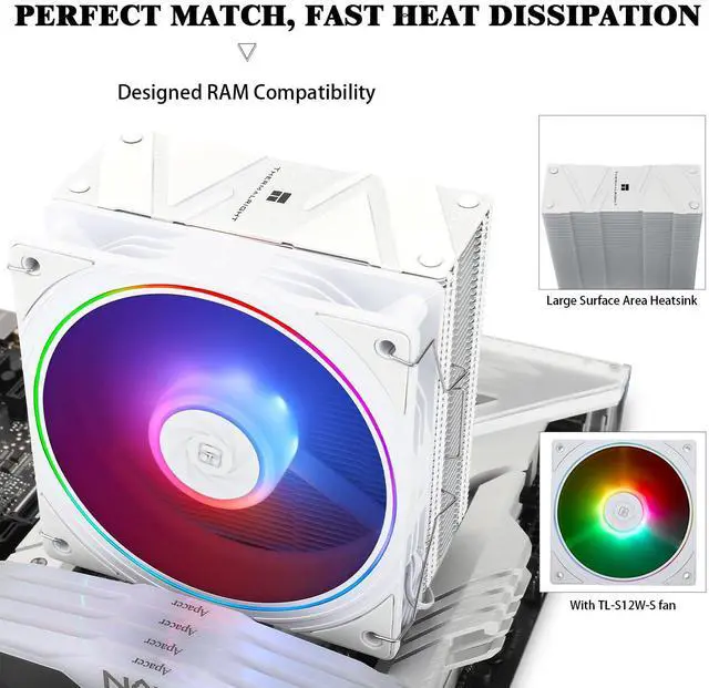 [AGHP Technology]4x6mm heatpipe adopts AGHP upgraded 4th generation technology to solve the effect of reverse gravity caused by vertical/horizontal direction.S-FSB bearings have a very long service life to ensure the overall service life of the PC cooler.ULa grade safety insulation low-grade, industrial-strength PBT+PC materials, with the intention of creating high-quality products for you. The overall height is 156m, compatible with more models of chassis.