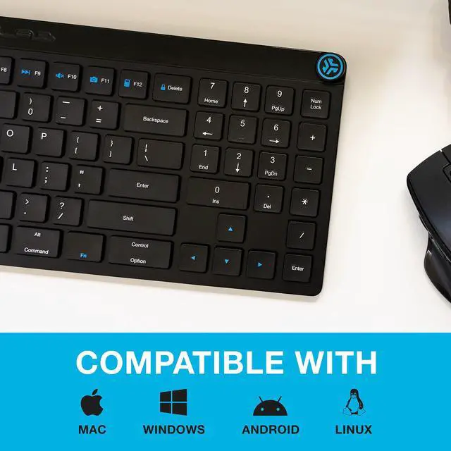 FLEXIBLE CONNECTIONS The JBuds Wireless Keyboard is compatible with threecount em, three!device connection options. You can pair with nearly any type of device using Bluetooth 5.2, Bluetooth 5.2, or USB. We hate pairing confusion too, so we made it super easy for you to switch between saved devices.