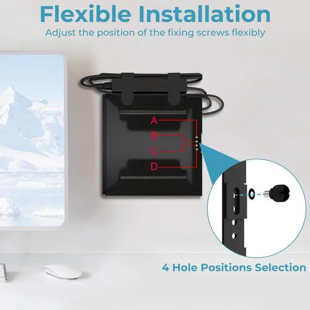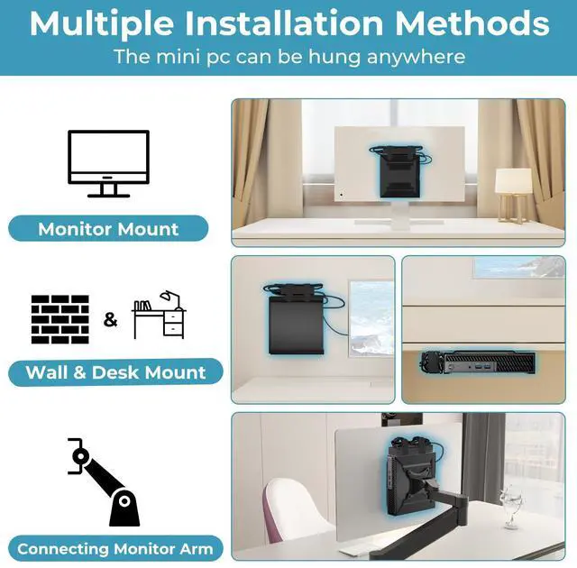 ---Four Mounting Options---Mount your device under the desk, under wall, behind a monitor, or attach it to a monitor arm, Enjoy a clutter-free workspace with flexible placement choices.(Note: Monitor arm not included.)
