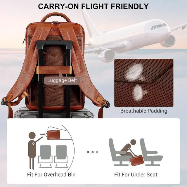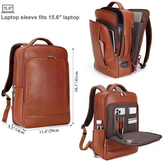 Keep Items OrganizedNo more messy packing! This women's leather backpack features two compartments, six inner pockets, three pen holders and three card slots makes organizing belongings a breeze. The side pocket is great for a water bottle. The key chain in the front pocket for easily finding keys. The dedicated 15.6" laptop sleeve provides secure and well-padded storage for your device, offering peace of mind during daily commutes or travel. Size: 11.4"(L) x 5.5"(W) x 16.1"(H), weights 2.9lb.