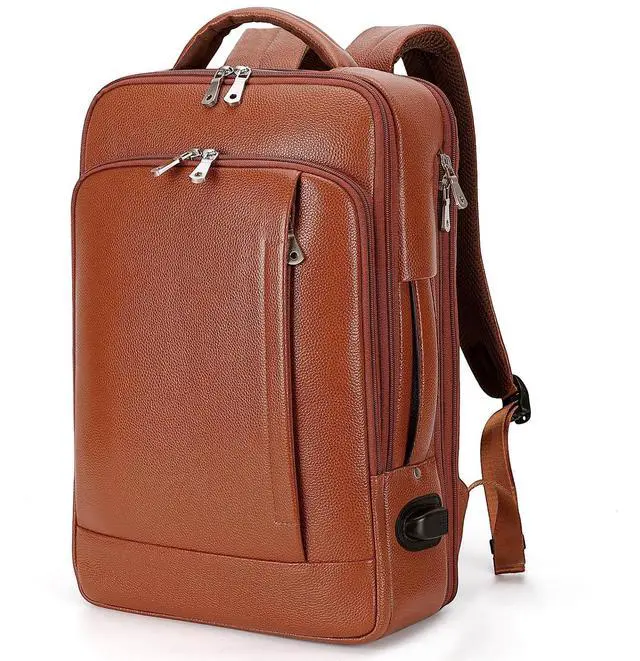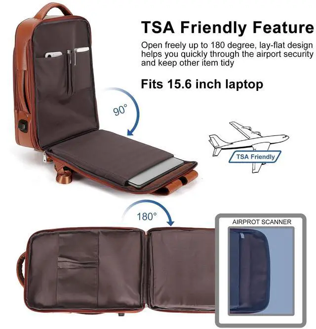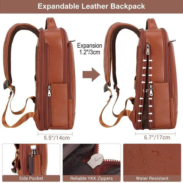TIDING Expandable Leather 15.6" Laptop Backpack for Men Women, TSA Friendly Business Travel Rucksack Slim Work Casual Daypack