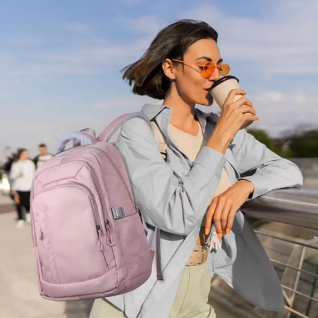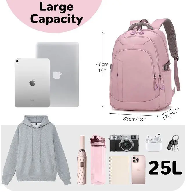 Outplea 25L Small Travel Backpack with Luggage Strap for Women, Lightweight Laptop Backpack, Light Pink