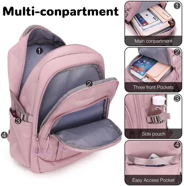 Large Space & Multi Pockets: 1 main compartment with a sleeve to hold 15.6 Inch Laptop, 1 vice compartment for daily necessities and magzines, 1 front compartment for other daily tools, 2 side pockets for bottle or other small items, 1 back anti-theft zipper pocket for cash, key or other valuables, makes your item organized and easier to find.