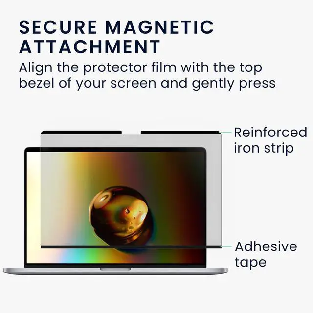 Magnetic Installation: The laptop privacy screen can be magnetically attached to your laptop thanks to the reinforced iron strip. Install it in seconds by aligning with your laptops top bezel