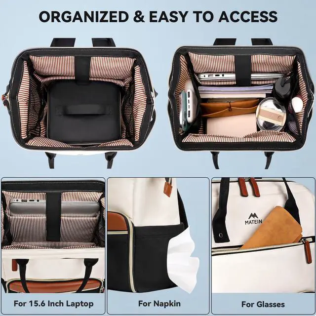 MATEIN Laptop Backpack with Lunch Box, 15.6 Inch Lunch Backpack for Women, College Computer Back Pack Work Backpacks with Insulated Lunchbox Meal Prep Bag for Teacher Nurse Commute Office, 2Pcs Set