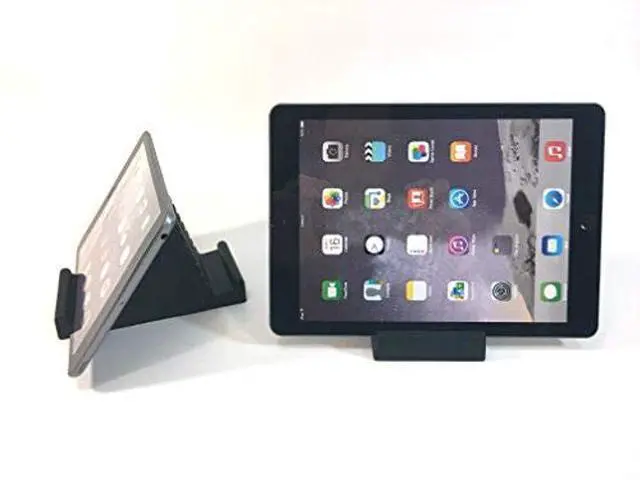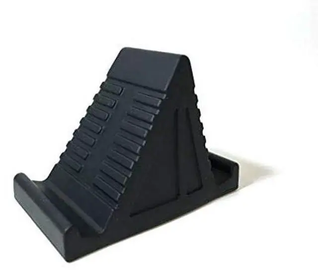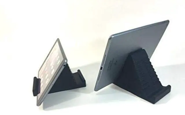 The not-too-tight sizing provides enough room for silicone or plastic cases. TabletProp is made of high-quality FDA grade Non-Slip Silicone (kitchenware grade) - give it a quick rinse in the sink to keep clean. There are no moving parts, nothing to break or eventually wear out. Constructed with a hollow center so that it will flex and then snap back to shape if squeezed. TabletProp is ideal for using devices in both Portrait and Landscape. This prop acts as a platform providing just the right lift and angles when using video chat. It is a great office desk stand that can be easily picked up and also used in the kitchen, bedroom, etc.