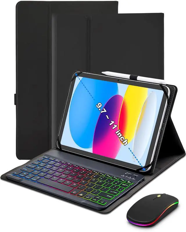Universal Keyboard Case with Mouse: Compatible with most 9" to 11" tablets, including iPad 9.7/10.2/10.5/10.9/(A16)11 inch Tablet, iPad 6th/7th/8th/9th/10th/11th Generation, Air 1st 2nd/3rd/4th/5th/6th Gen/Air 11 M2 M3, Pro 11-inch, Samsung Galaxy Tab 10.1/10.4/10.5/11 inch Tablet A7,A8, A9+, A11+, S6 Lite, S7, S8, S9/S9 FE, S10/S10 Lite/S10 FE etc and Other Android Tablets