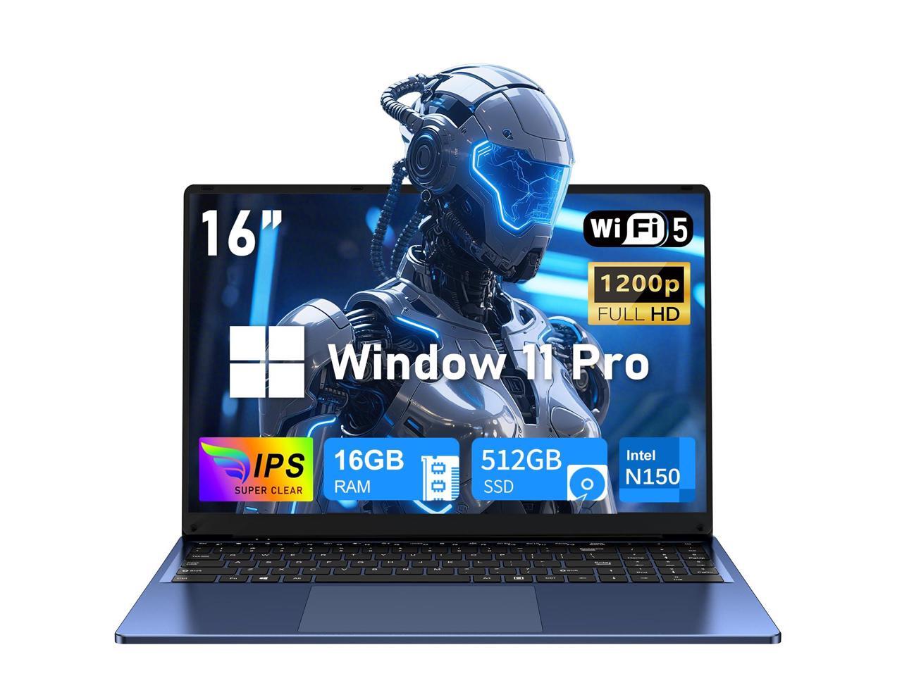 16 Inch Laptop Computer, Gaming Laptop 2025, 16GB RAM 512GB SSD, N150 Processor(Up to 3.6GHz), FHD 1920 * 1200, 180° Open, Backlit, BT4 WIFI5, Windows 11 Pro, 6000mAh/46.2Wh, Premium Navy