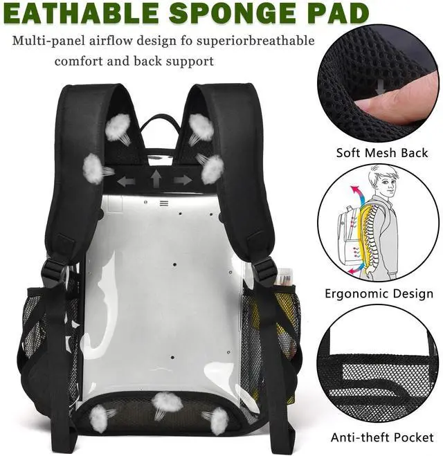 Breathable & Adjustable Shoulder Strap: This see through backpack