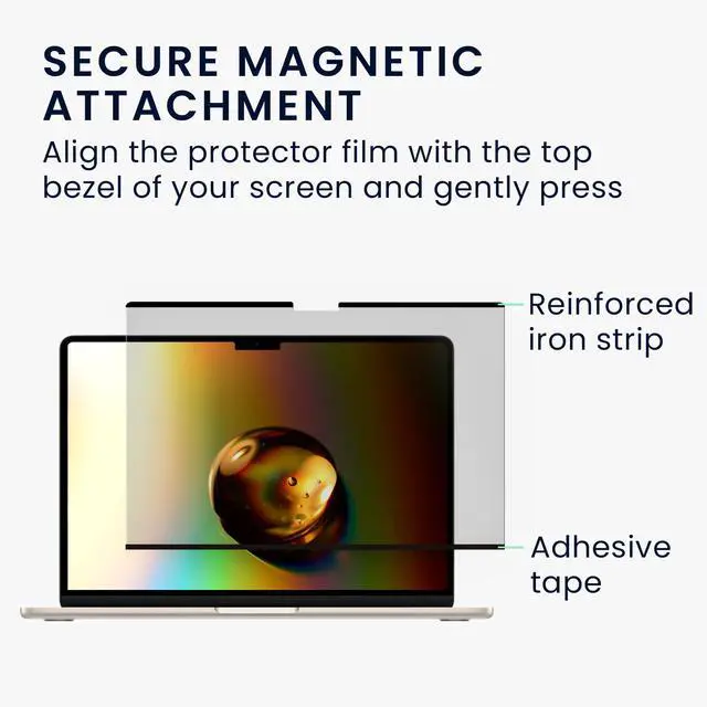 Magnetic Installation: The laptop privacy screen can be magnetically attached to your laptop thanks to the reinforced iron strip. Install it in seconds by aligning with your laptops top bezel