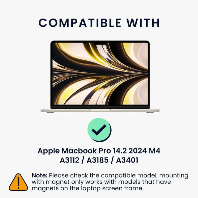 Note: magnetic mounting works only with laptops that have built-in screen frame magnets FALSE