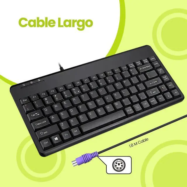 PLUG AND PLAY - Easy setup, require no extra driver or software to work; Simply plug it into a PS2 port and start typing with a 5'9 long cable, it is long enough for you to connect with your computer, whether it is on or under your desk