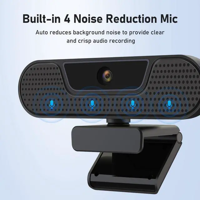 Built-in 4 Noise Reduction Mics: W8GS webcam is equipped with an advanced noise-canceling microphone that ensures your voice is transmitted clearly even in noisy environments. This feature makes it perfect for webinars, conferences, live streaming, and professional video callsyour voice remains crisp and clear regardless of background noise or distractions