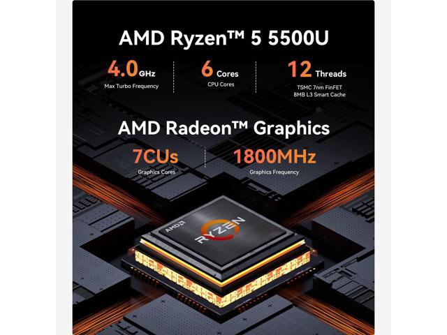 - AMD Ryzen 5 5500U ProcessorThe Beelink EQR5 Mini PC is equipped with AMD Ryzen 5 5500U(6C/12T,max turbo to 4.0GHz).Pre-installed with Win 11 Pro without any bloatware,which creates a very smooth experience for your visually home entertainment,Web browsing,streaming video,design,office work and games(such as Fall Guys,LOL,Call of Duty).