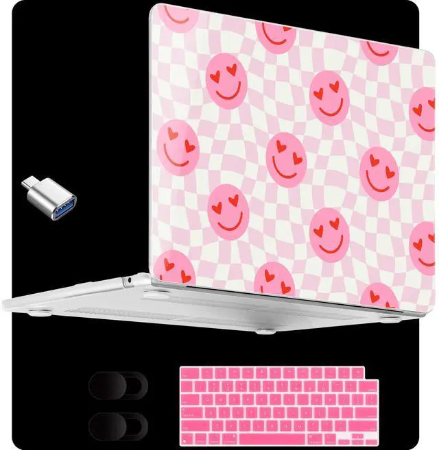 MEEgoodo for M4/M3/M2 MacBook Air 13.6 inch Case 2025 2024 2022(Fit Model A3240/A3113/A2681), Clear Laptop Shell Cases for MacBook Air 13-inch, Checkered Pink Hearts