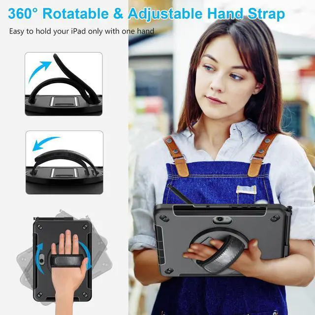 BUILT-IN 360 DEGREE ROTATING STAND: There is a sturdy swivel foldable stand. View your iPad in horizontal and vertical mode. Convenient for watching videos,conferences, construction, Free your hands