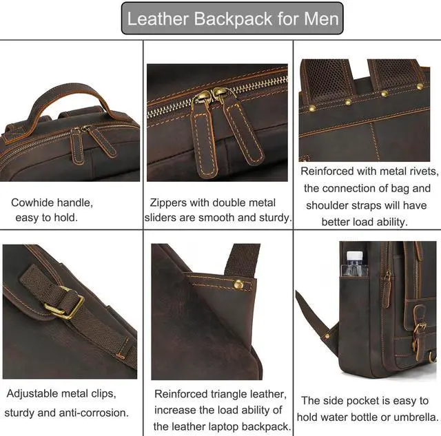 Full-grain Leather: The backpack is made of genuine leather and high quality polyester lining. Attention: This kind of leather is easy to get scratches on the surface, this is an inherent characteristic of Crazy Horse leather, please understand. Scratches on the bag can be rubbed off repeatedly by hand to make it look new. Leather will become nicer and softer over time and use, you can enjoy the change during using.