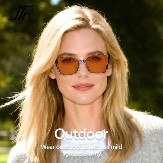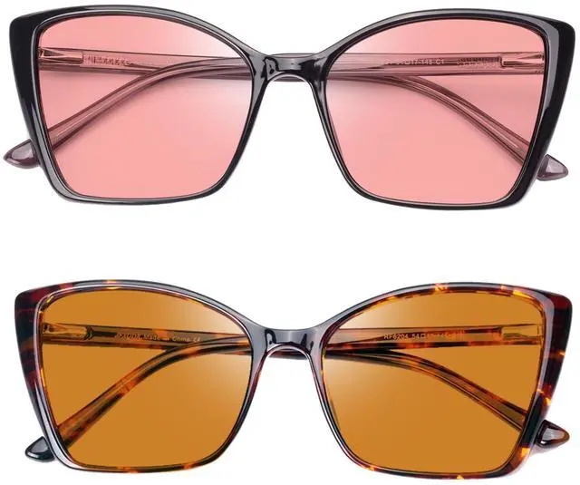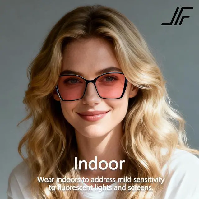 JFXQDR Women's 2 Pack Indoor Fluorescent-41 Rose & Outdoor Fluorescent-60 Brown Cat Eye Tinted Blue Light Blocking Glasses for Migraine, Light Sensitivity, Photophobia LED Gaming Computer Screen Glare