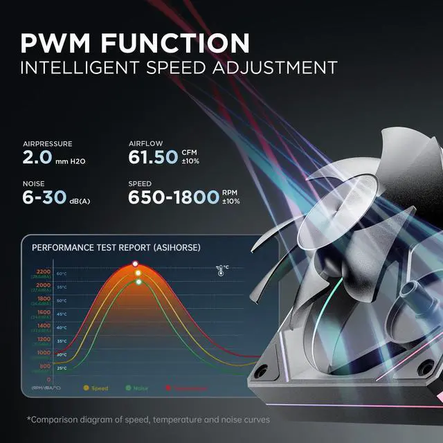 Optimized Cooling Performance Delivers 61.5 CFM airflow and 2.0mmHO wind pressure at 1800 RPM, providing efficient heat dissipation even during intense tasks. The high wind pressure ensures optimal cooling through heat sinks and complex channels, ideal for high-performance users.