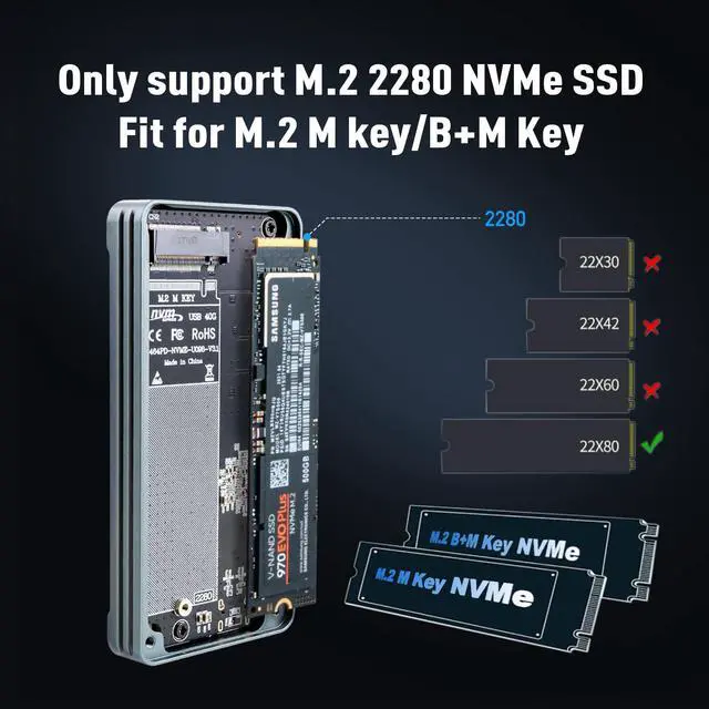 [Superior Speed M.2 Enclosure] This 40Gbps M.2 NVMe SSD Enclosure Using Intel JHL7440 high-end main control chip,adopts dual-chip master control,support USB4 and fully compatible with Thunderbolt 3 USB3.2/3.1/3.0/Type-C (USB2.0 and below not compatible)