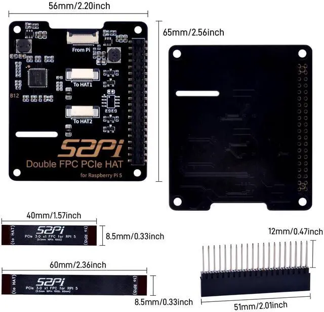 GeeekPi Dual FPC PCIe HAT for Raspberry Pi 5, B12 HAT 1 to 2 PCIe Interface with 40Pin GPIO Pin Header for Raspberry Pi 5