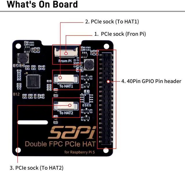 Robust and Reliable Design --- Built with quality and durability in mind, the B12 Raspberry Pi HAT ensures stable and reliable performance, providing a dependable solution for your PCIe expansion needs.