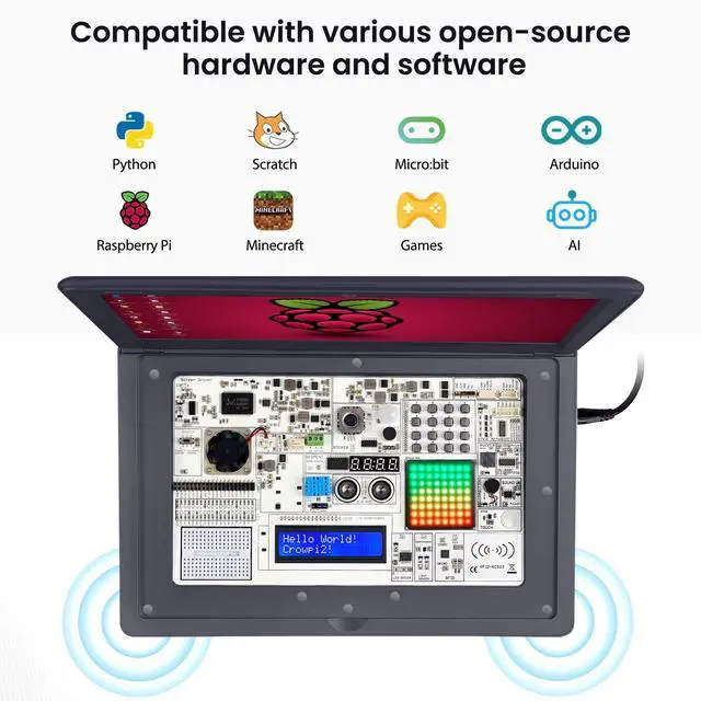 Compatible with Raspberry Pi 5 8GB Kit: Upgrade anytime to the Raspberry Pi 5 8GB Kit for more advanced computing and development projects while keeping your existing CrowPi2 hardware platform