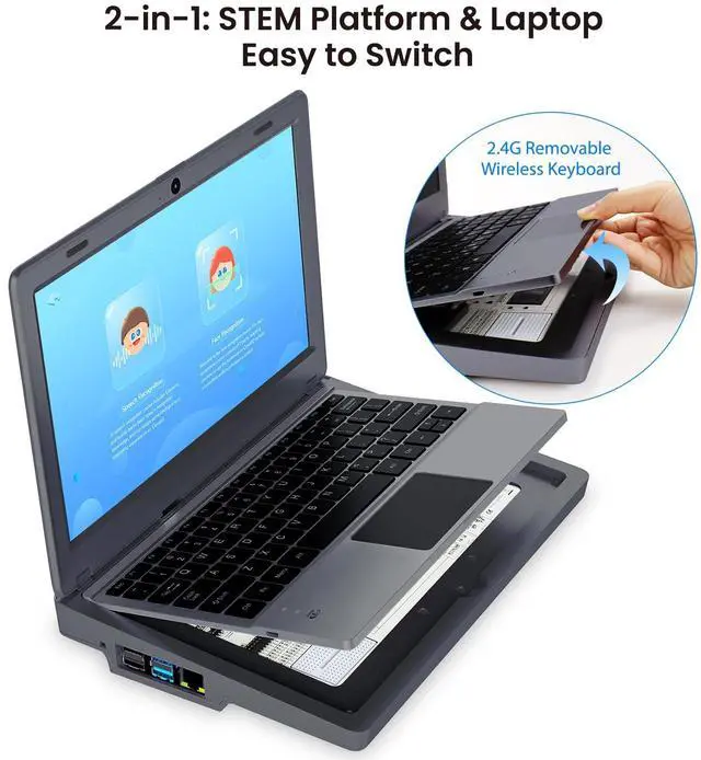 Built-in Lessons: 76 Lessons for Python, Scratch, AI, and Minecraft Coding; 18 mini games, and special learning modes guide users through code, logic, and sensor-based projects. Includes face/speech recognition