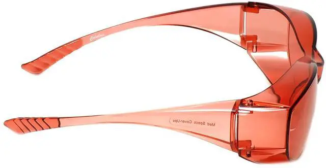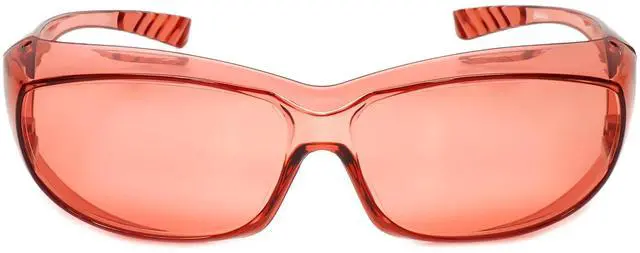 Versatile FL-41 Tint Technology: These Calabria FL41 Pink Fitover Safety Glasses feature FL-41 tinted glasses for light sensitivity, making them an ideal pair for indoor sunglasses for light sensitivity. The tint targets wavelengths of 480-520nm, ideal for use as fluorescent light glasses, and also effective as fit over computer blue light blocking glasses. These glasses serve as great fluorescent & blue blockers glasses for women and men.