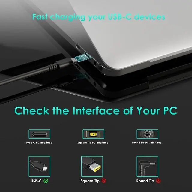 Works for MacBook,Samsung,Dell,HP,Huawei,Lenovo,Acer,Asus and most USB-C laptops. Additional USB-A port provides maximum 12W to power your mobiles or tablets simutaneously. Please check your computer's type-c interface and make sure it supports charging before buying.