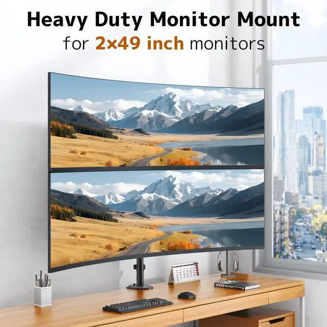 Dual-Screen Vertical Stacking: Securely holds two ultrawide monitors (up to 49" each, 44 lbs per screen) in vertical alignment with VESA 75x75mm/100x100mm compatibility, optimized for multitasking setups