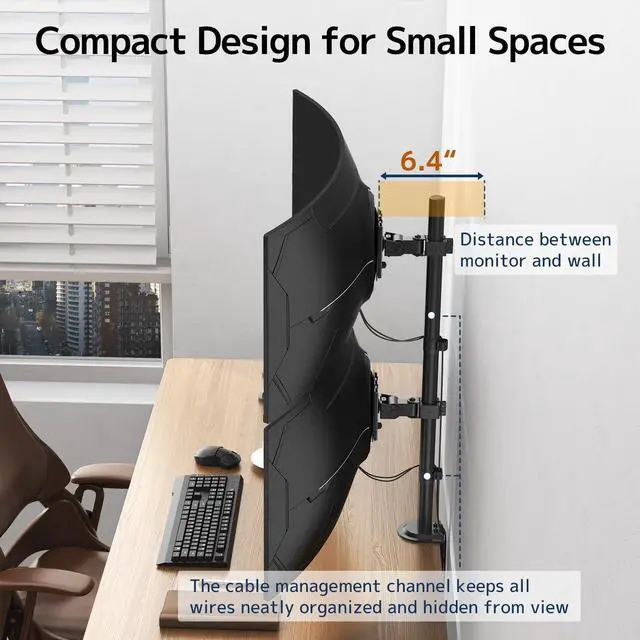 Space-Optimized Design: Vertical stacking reduces desk footprint compared to side-by-side arms, ideal for ultrawide displays in compact workspaces or professional environments