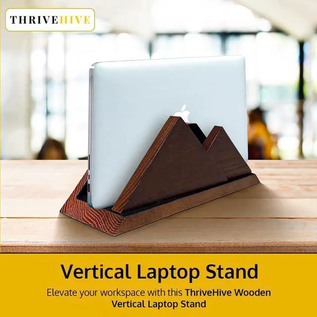 ThriveHive Dual Laptop Holder Vertical Laptop Stand 2 Slots Wooden - Dark Brown (Walnut Color)