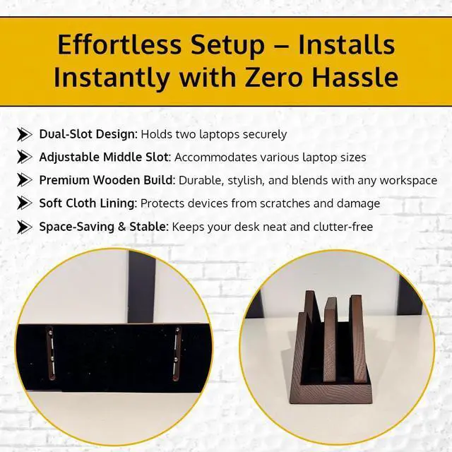 VERSATILE DESIGN: Dual-slot wooden stand accommodates two laptops, tablets, or books simultaneously with adjustable width slots for various device sizes