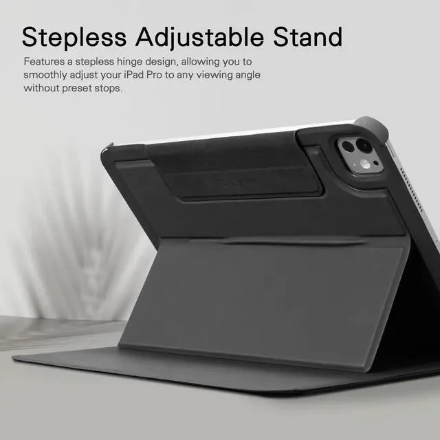 Stepless Adjustable Stand: Features a stepless hinge design, allowing you to smoothly adjust your iPad Pro 13 to any viewing angle without preset stops. Enjoy seamless, flexible positioning for drawing, typing, watching videos, or video calls