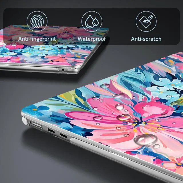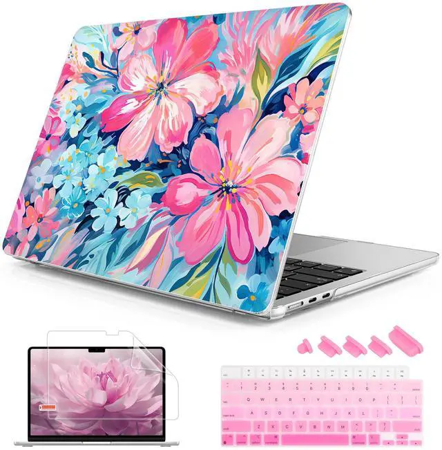 Mektron for 2025-2022 MacBook Air 13.6 inch Case M4 M3 M2Model A3240 A3113 A2681 with Liquid Retina Display Touch IDPrinted Bright Hard Shell Cover for MacBook Air 13.6"H and-Painted Flowers