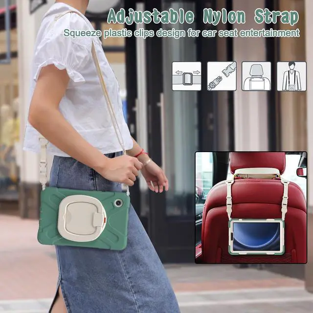 • Multi-Function Features360°rotating +180°folding Grip can be used as a handle, easy to hang your Tablet in kitchen, washroom, bedroom; Kickstand is stable enough to stand on different surfaces for children to view. And with a adjustable shoulder strap, it is convenient for you to carry and hang everywhere.
