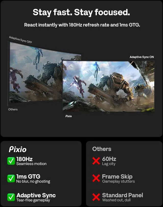 ULTRA-FAST 180HZ REFRESH RATE Experience buttery-smooth motion and reduce motion blur in high-speed gaming environments for a competitive edge.
