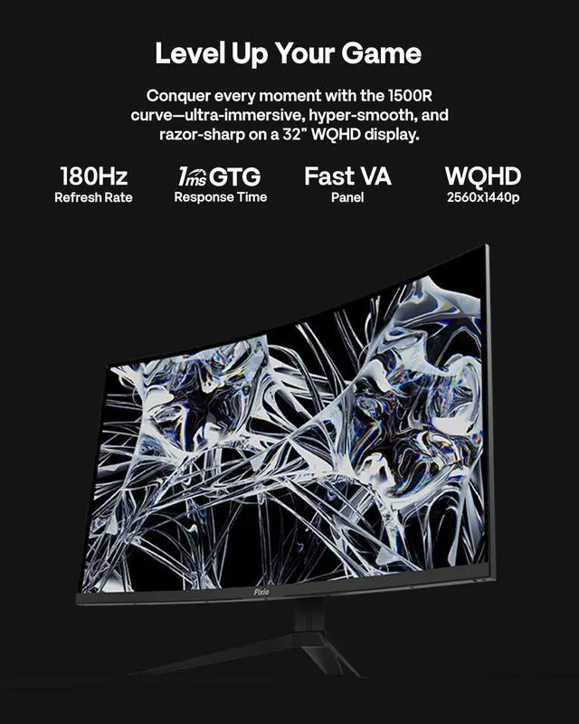 Pixio PXC328 32 inch 180Hz Refresh Rate QHD 1440p Resolution 1500R Curved Fast VA Panel 1ms GTG Response Time Adaptive Sync HDR Curved Gaming Monitor