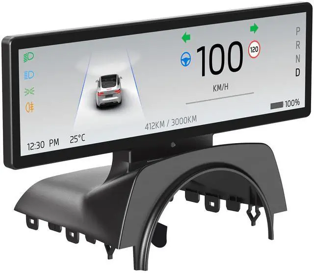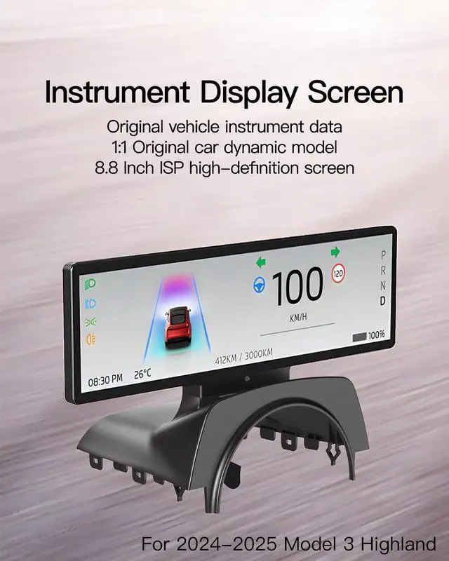 FSDRU 8.8" Smart LCD Display, Exclusive to 2024-2025 Model 3 Highland, Original Instrumentation Data/Carplay/Video Inputs, Safe Installation, No Broken/No Hole