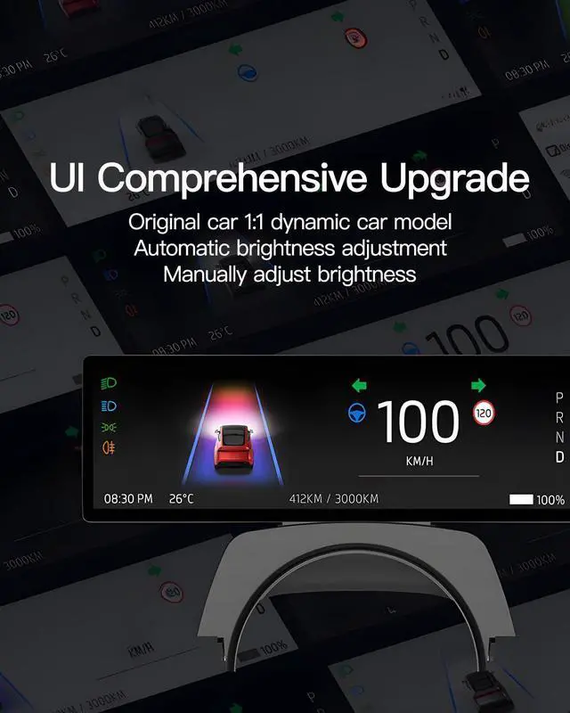 Compatible Models8.8 inch Smart LCD displayexclusive to 2024-2025 Highland model 3.The original instrument data Carplay, The Ul is fully upgraded and echoesthe style of the original car. The brightness of the instrument screen automaticallysynchronizes with the brightness of the original screen,or you can adjust the brightness manually.