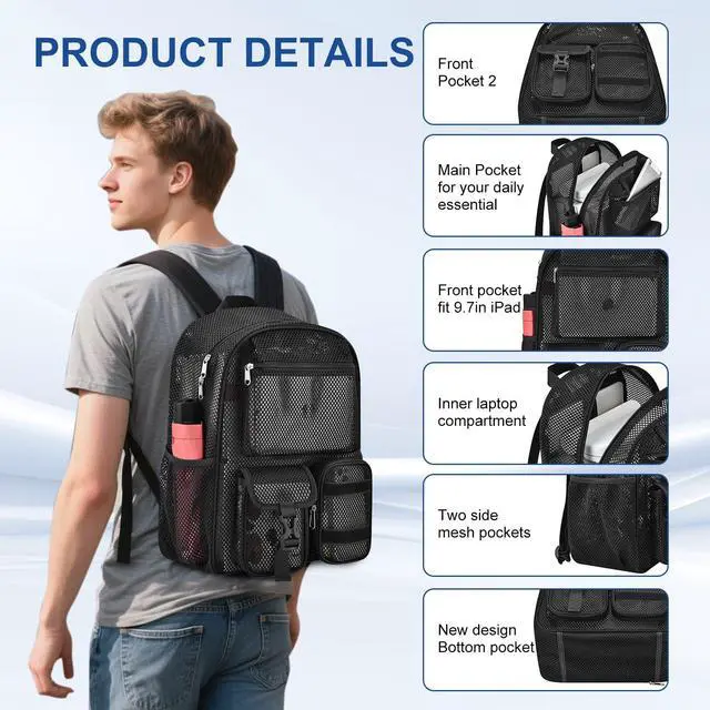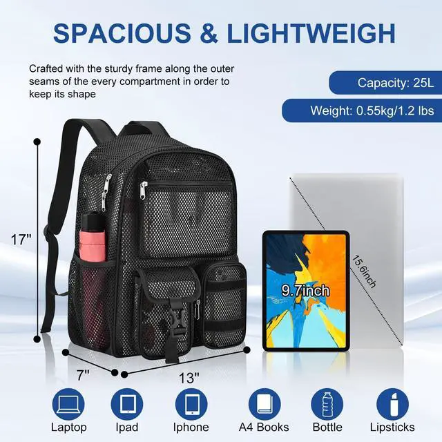 High-Quality MaterialThis mesh backpack is constructed from a premium, lightweight mesh material that is renowned for its durability. The mesh is not easy to break when subjected to strong external force.