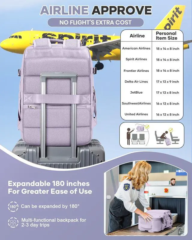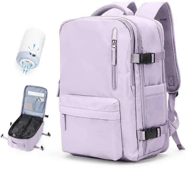 Vacuum Travel Backpack with Pump for Women, Personal Item Carry on Backpacks Flight Approved 18x14x8 inches for Men,Laptop Waterproof Work Compression bags Casual Daypack. (Purple)