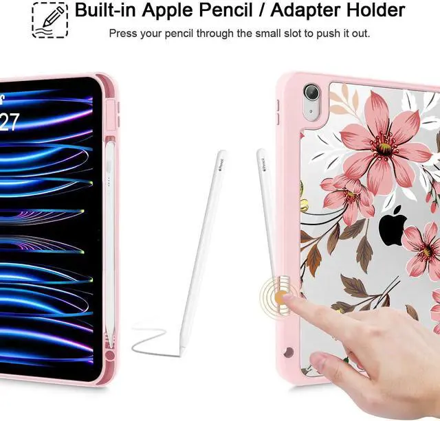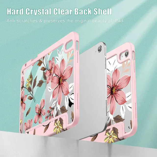 Mektron Case for 2025 iPad 11 inch (A16 Chip) 11th Gen Fit iPad 10th Gen 10.9 inch 2022, Buit in Pencil Holder with Shockproof Cover Clear Shell + Trifold Stand + Auto Wake/Sleep, Floral C293