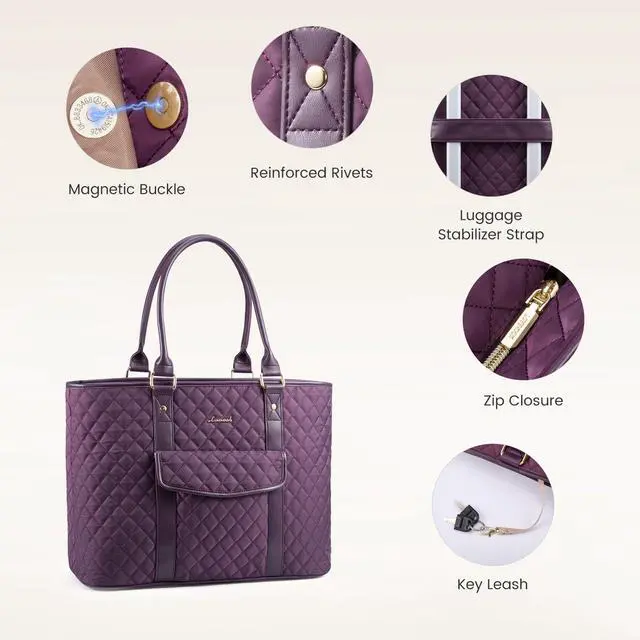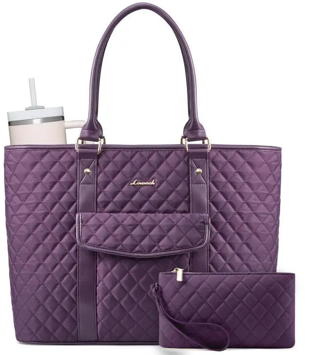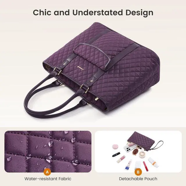 LOVEVOOK Laptop Tote Bag for Women 15.6 Inch,Waterproof Computer Bag for Laptop for Womens,Quilted Travel Work Tote Bags for Women,Stylish Laptop Bag Purse with Luggage Sleeve for Teacher,Nurse,Office