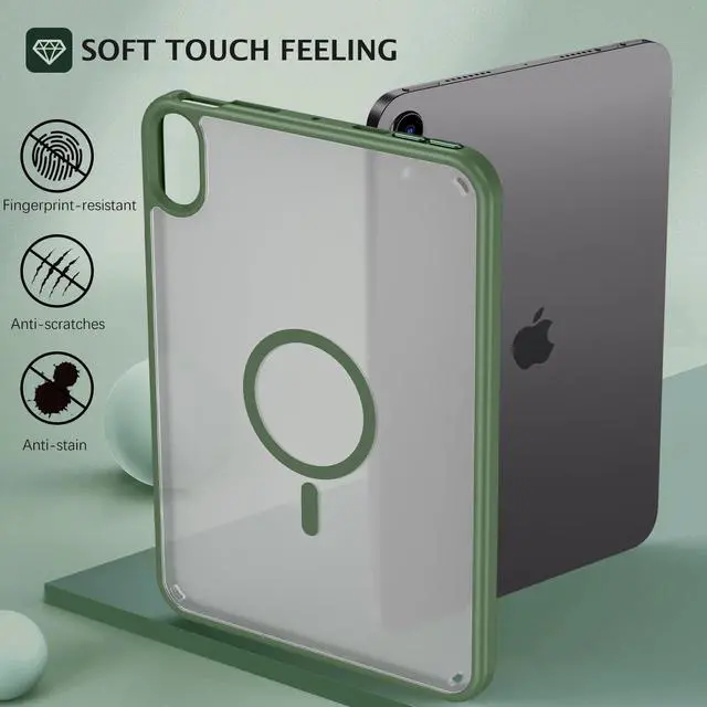 Telaso for iPad mini 7 A17 Pro 2024/iPad Mini 6 2021 8.3 Inch iPad mini 7th/6th Gen Magnetic Case, Translucent Matte Back Soft TPU Bumper Military Grade Protective Case for iPad mini 7/Mini 6, Green