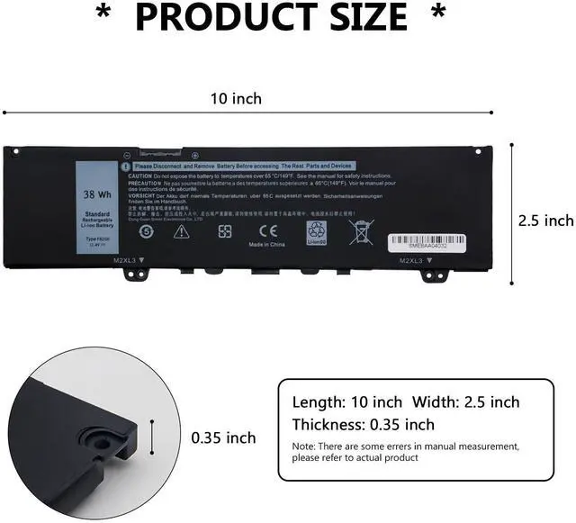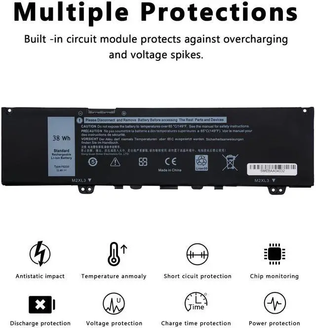 Specification:Voltage:11.4V.Capacity: 38WH.Color: Black.Condition: 100% new from manufacturers.Package Includes:1x F62G0 Laptop Battery,2 x Free Screwdrivers, and 2 x plastic sheets for Dell Laptop Battery.We will offer 12 months warranty. If you have any questions or concerns,we will respond within 24*7 hours via emails and give you friendly after-sales service.